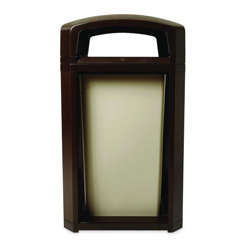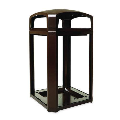 All-weather, dome top waste receptacle provides convenient access from all sides. Hinged cover makes trash removal a snap. Rain cap minimizes exposure to wind, rain and snow; prevents light refuse from blowing away. Dome top/frame and aggregate panel kit sold separately—ORDER BOTH.Package Includes: (1) Frame; (1) LinerNote: This is a non-returnable item.