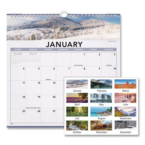 Explore a different picturesque landscape each month. Features full-color photos. One month per page with unruled blocks. Past and future months reference; federal holidays highlighted. White wirebound with hanging loop. Printed on high-quality paper with superior ink bleed resistance.Note: This is a non-returnable item.