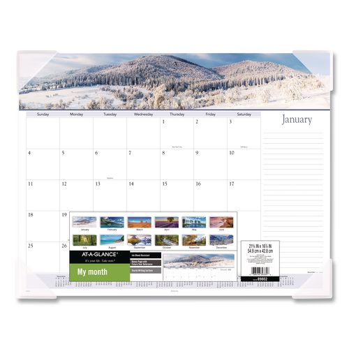 New landscape photography featured each month. Durable backboard provides a sturdy writing surface. Features full-color, wide-view photos. One month per page with unruled blocks and lined notes space. Full-year calendar reference. Four, clear poly corners to keep pages flat. Printed on high-quality with superior ink bleed resistance.Note: This is a non-returnable item.