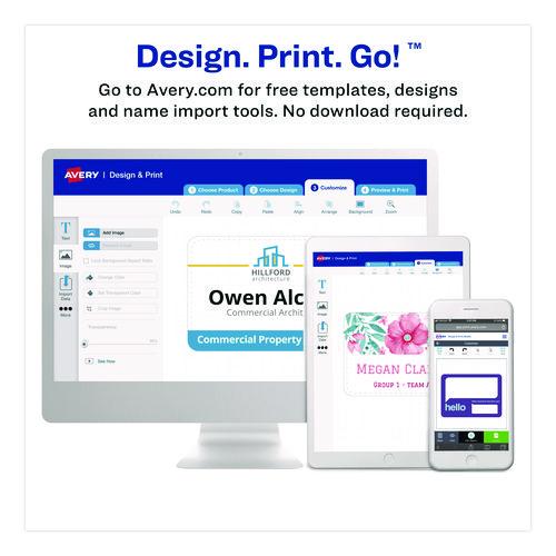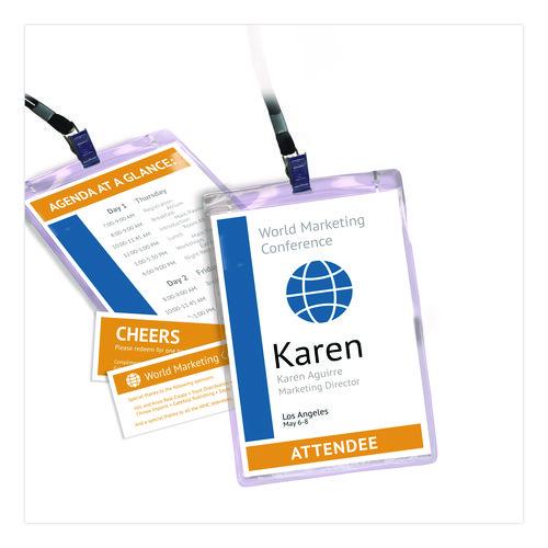 These badges feature a durable, easy-to-load, open top, pocket-style design. White micro-perforated name badge inserts are printable on both sides and separate cleanly leaving smooth edges. Create badges with text and colorful graphics using free designs and templates with Avery® Design & Print. Plastic holder is reusable and displays names clearly. 8.5 x 11 sheets for laser and inkjet printers.Package Includes: (152) Printable All-Purpose Tickets; (76) Printable Name Badge Inserts