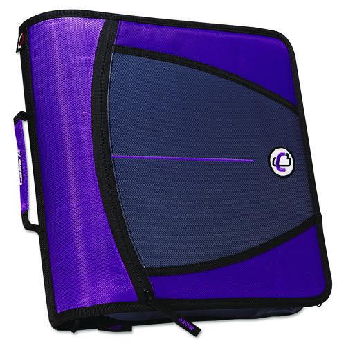 Premium large rings hold multiple subjects. Five tab, six pocket expanding file allows for storage up to six subjects. Handle and shoulder strap creates ease of mobility. Patented angled zipper keeps gusset out of the way when writing. Unique designed gusset is made of Rip-stop material that traps punctures to prevent tearing.