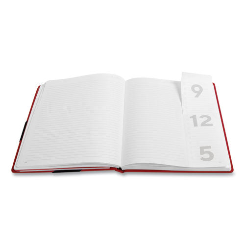 Write down plans and client notes in this gray hardcover journal. The narrow-ruled format with to-do lists and sketch pages meets a variety of note-taking needs, while the card slot holds your ID badge and business cards. Features an inside front cover pocket to keep important documents, and the pen loop ensures you can make quick updates.