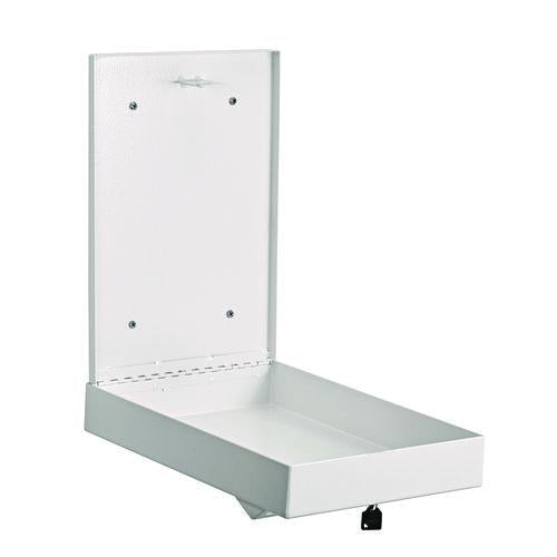 Perfect for any indoor or weather-protected location, the AdirOffice Wall Mount Drop Box for secure document storage is a low-profile but secure way of collecting important items like receipts, letters, and even cash. Durable construction and a neutral-colored finish make it ideal for any business where secure storage is important on a temporary basis. The 2.2" depth wall mounted steel drop box is specifically designed for receipt, temporary secure storage and retrieval of all items that can fit into its 9.25" x 0.4" slot. It readily accepts legal-sized documents, envelopes and other important correspondence that can be easily accessed through the storage compartment. made from steel and features a secure pick-resistant lock and two keys. Mounting hardware is included.Package Includes: (2) Keys; Mounting HardwareNote: This is a non-returnable item.