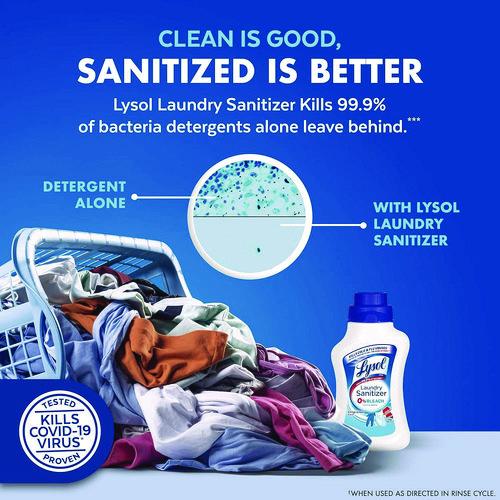 Used as an additive, this laundry sanitizer kills 99.9% of bacteria on clothes. Tested and proven to kill SARS-CoV-2, the virus that causes COVID-19, in five minutes when used as directed in pre-soak. Contains 0% bleach, works in cold water and is suitable to use with both whites and colors. Just add to the fabric softener compartment or directly into the water during the rinse cycle. Works in standard and HE washers. Can be used on most machine washable fabric items, including baby clothes, gym clothes, towels, bedding, undergarments and delicates.