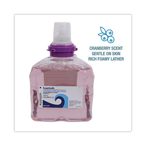 Boardwalk® Lavender Foam Soap is a creamy foaming soap that provides rich, foamy lather. The liquid soap has a lavender color and features a pleasant, fresh, cranberry fragrance to leave hands smelling clean and refreshed. The formula is designed to be gentle on skin and tough on dirt. Constructed with a fresh dispensing valve with each refill which helps to prevent contamination. Great value for the money.