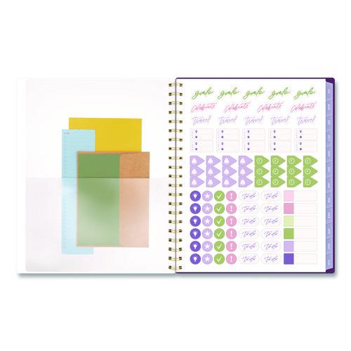 Add some bright florals to your planning! The Cambridge Leah Bisch Petite Floral Academic Weekly Monthly Planner helps you keep your day, month and year organized with fresh, colorful style. Planner has a delicate floral pattern and covers 12 months from July to June. Weekly spreads feature unruled planning space and a section for notes. Monthly spreads have unruled daily blocks, a notes section, past and future reference calendars and a tab for easy navigation. Special pages include a reference calendar, holiday list, future planning pages, notes pages and a double-sided pocket. Durable poly cover helps the planner stand up to wear and tear, while twin wire binding helps prevent snags. Leah Bisch is a watercolor artist, hand letterer, and designer. Her style strikes a fine balance between modern simplicity and lush floral maximalism that comes to life through her organic, fresh perspective. Most days, she can be found in her home studio, coffee in one hand and a watercolor brush in the other, painting the hours away.Package Includes: Customizing StickersNote: This is a non-returnable item.