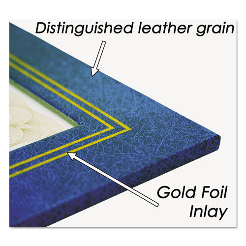 The rich leather feel and gold inlay trim showcase your documents while the unbreakable clear plastic cover protects them. Universal design allows for easy wall mounting. Can also be used for desk, bookshelf or counter display with the included photo frame easel. Both applications can display the frame in landscape or portrait orientation. Simulated buffalo grain leather enhances presentations.