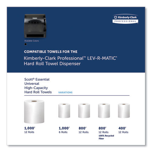 See-through smoked plastic design eliminates the need to open the dispenser to determine when a refill is needed. Easy lever operation. Durable high-impact plastic. Automatic feed enables one-handed loading.