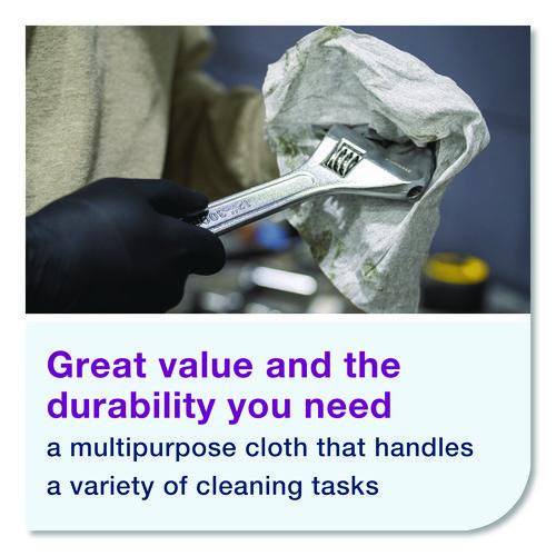 Tork light-duty cleaning cloths are an economical, multi-purpose wiper. Compatible with most chemical solvents, these durable cloths can be used wet or dry for a variety of light-duty cleaning tasks. They're soft and flexible, making it easy to clean in hard-to-reach places and are more durable than a paper wiper, so you can rinse and reuse them. The giant roll has a high capacity to save time on refills.