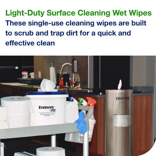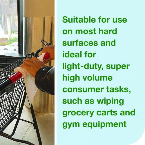 Make cleaning simple with these multipurpose cleaning wipes. These single-use cleaning wipes are designed to scrub and trap dirt for a quick and effective clean, while the pH-balanced formula cleans and deodorizes. They are suitable for use on most hard surfaces and are ideal for light-duty, super high-volume consumer tasks, such as wiping grocery carts and gym equipment. These wipes come in jumbo rolls, so staff won't need to refill as often, and are compatible with Everwipe by Tork W12 wet wipe dispensers.