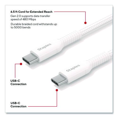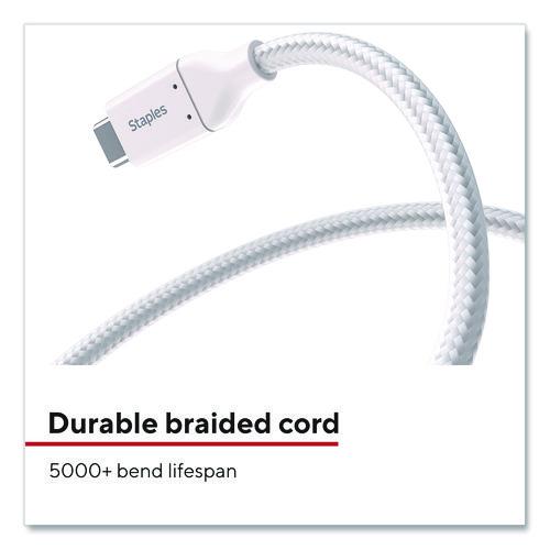 Power your Apple devices (Generation 14 and earlier) with this lasting Staples® USB-C to Lightning braided cable. The unique braided design provides extra durability, prevents tangles and has been tested to withstand up to 5,000 bends. The cable length gives extra reach when needed and is perfect for comfortably using devices while they charge.
