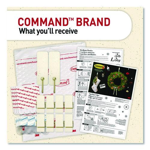 It's the most wonderful time of the year! Limited Edition Command™ Hooks and Clips are here to help you spread cheer without leaving damage. These in-season decorative hooks and clips are all about adding festive flair down to the little details. Hang stockings and wreaths on Hooks, hold holiday cards and cookie recipes in Spring Clips. Together they let you hang what you want, where you want, without the hassle of tools, making them the best way to decorate like a pro. Command™ removable adhesive strips hold as long as you need them to on a variety of smooth, finished surfaces. Once the tree comes down and the guests are gone, these adhesive hooks remove cleanly with no sticky residue or damage left behind. Pick up Command™ Products, and get inspired to organize, decorate, personalize, and deck the halls.Package Includes: (2) Hooks; (8) Spring Clips; (12) Strips