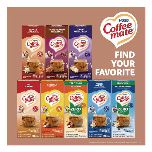 Stir up the perfect cup with Coffee mate, America's #1 creamer brand. It is shelf stable with no refrigeration needed. Coffee mate liquid creamer singles retain their delicious flavor at room temperature for up to nine months unopened. Find your perfect match with NESCAFE Coffee and Coffee mate liquid creamer singles. All Coffee mate foodservice single serve creamers are cholesterol-free, gluten free and kosher dairy. See the full Coffee mate ingredients statement for Coffee mate creamer ingredients.Note: This is a non-returnable item.