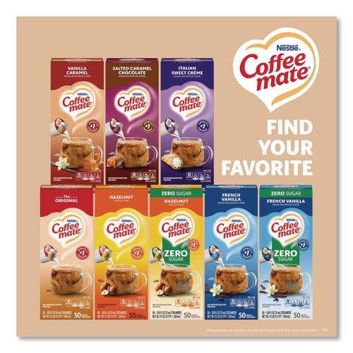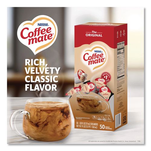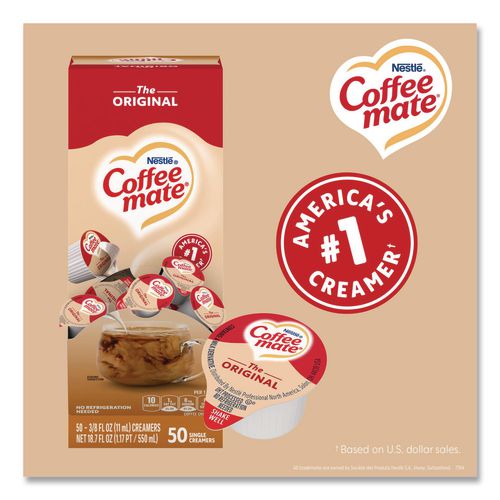 Stir up the perfect cup with Coffee mate, America's #1 creamer brand. It is shelf stable with no refrigeration needed. Coffee mate liquid creamer singles retain their delicious flavor at room temperature for up to nine months unopened. Find your perfect match with NESCAFE Coffee and Coffee mate liquid creamer singles. All Coffee mate foodservice single serve creamers are cholesterol-free, gluten free and kosher dairy. See the full Coffee mate ingredients statement for Coffee mate creamer ingredients.Note: This is a non-returnable item.