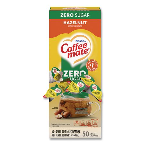 Liquid Coffee Creamer, Zero Sugar Hazelnut, 0.38 oz Mini Cups, 50/Box