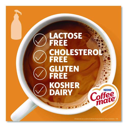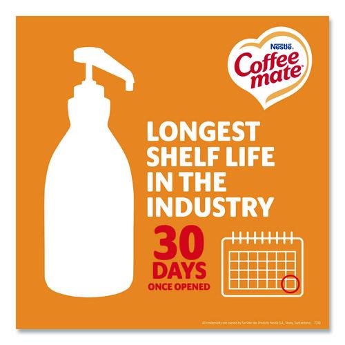 Stir up the perfect cup with Coffee mate, America's #1 creamer brand. Nestle Coffee mate flavored liquid concentrate adds a rich and smooth flavor to your cup of coffee. In convenient pump bottles, it is shelf stable with no refrigeration needed. Coffee mate flavored liquid concentrate retains its delicious flavor at room temperature for up to nine months unopened or 30 days opened. Find your perfect match with NESCAFE Coffee and Coffee mate flavored liquid concentrate creamer. Our Coffee mate Pump Bottle liquid concentrates are available in popular options. All Coffee mate foodservice liquid concentrate pump bottles are lactose-free, cholesterol-free, gluten free and kosher dairy. See the full Coffee mate ingredients statement for Coffee mate creamer ingredients.Note: This is a non-returnable item.