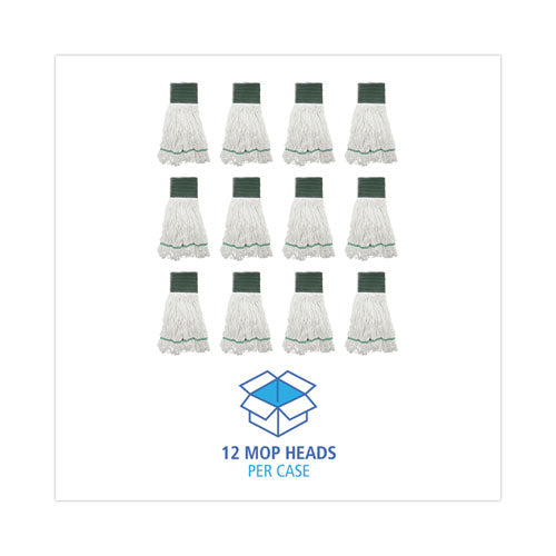 Boardwalk Saddleback Loop-End Wet Mop Heads are constructed from standard, four-ply, natural yarn for a quality mop head. The looped end design sheds less lint, reduces fraying and unraveling. The durable, double-sewn tailband prevents tangles and provides more floor coverage on a variety of floor types. The heavy-duty, five-inch, vinyl mesh headband securely holds full-weight, premium fiber strands. Designed for use with clamp-style or gripper-style mop handle, which is sold separately.