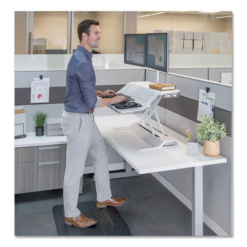 Lotus DX Sit-Stand Workstation, 32.75" x 24.25" x 5.5" to 22.5", White