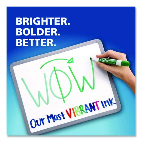 Create high impact marks and track, schedule and present clearly. High-quality ink-delivery system ensures consistent, skip-free results, while bold, vivid colors make it easy to see what's written from a distance. EXPO® Low-Odor Dry-Erase Markers always erase cleanly and easily from whiteboards and other non-porous surfaces such as porcelain, melamine and glass, simply with a dry cloth or a standard whiteboard eraser; but for optimal results, EXPO® whiteboard erasers are recommended. As their ink is specially designed to be low-odor and quick drying, they're the perfect dry erase marker for use just about everywhere: classrooms, offices, homes, boardrooms and more.