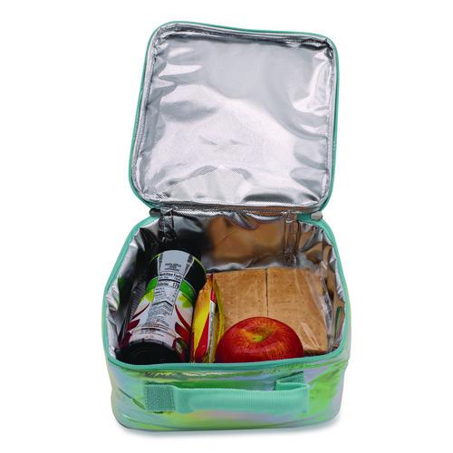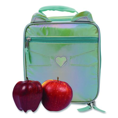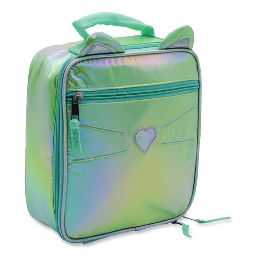 This Accessory Innovations lunch bag is perfect for back to school and beyond. This super cute lunch bag is made of iridescent poly nylon with 3D ears, PU nose applique, and embroidered whiskers. The bag has a large zip-closure main compartment with plenty of room for sandwiches, drinks, snacks, etc.