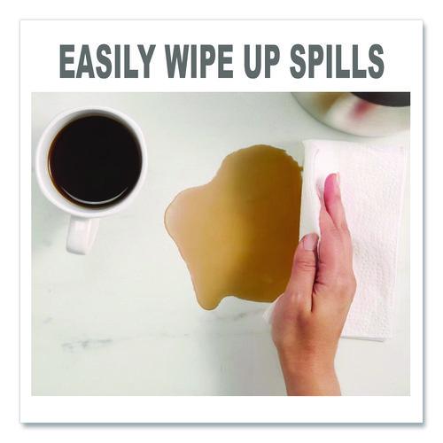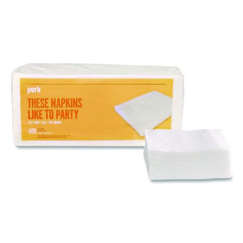 Take on the drips and slips of lunch on the run with these white paper napkins. The generous size is perfect for everything from well-dressed side salads to barbecue banquets, covering your need for a reliable cleanup option. Easily wipe up spills and leftovers with the folded embossed design. With 400 crumb catchers in each pack, these napkins are great for busy break rooms or cafeterias.
