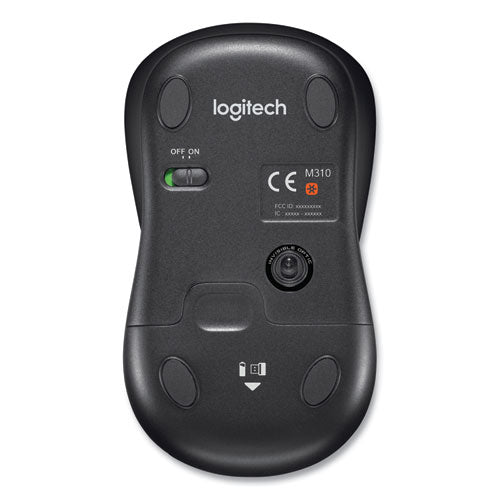 For an easy-to-use mouse that feels just right in your left or right hand, try the M310 wireless mouse. It offers a comfortable, contoured design with soft rubber side grips, 18 months of battery life, and our tiny, leave-in USB nano receiver that provides long-range, advanced 2.4 GHz wireless connectivity for fast data transmission and virtually no delays or dropouts.Package Includes: Nano Receiver; (1) AA Battery; User Documentation