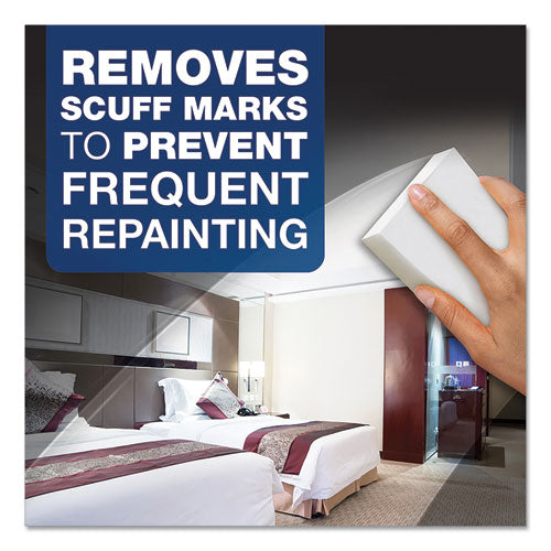 Mr. Clean Magic Eraser is a powerful all-purpose cleaner that removes scuff marks, dirt and grime from a variety of surfaces around your business. This Mr. Clean multi-surface cleaner uses innovative, textured, water-activated cleaning pads as micro-scrubbers to reach into surface grooves and lift away the toughest soils with water alone. It is 50% stronger than Mr. Clean Magic Eraser Original for heavy-duty cleaning, holds up to tough messes better, and lasts longer between replacements.