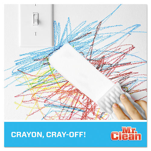 Mr. Clean Magic Eraser is a powerful all-purpose cleaner that removes scuff marks, dirt and grime from a variety of surfaces around your business. This Mr. Clean multi-surface cleaner uses innovative, textured, water-activated cleaning pads as micro-scrubbers to reach into surface grooves and lift away the toughest soils with water alone. It is 50% stronger than Mr. Clean Magic Eraser Original for heavy-duty cleaning, holds up to tough messes better, and lasts longer between replacements.