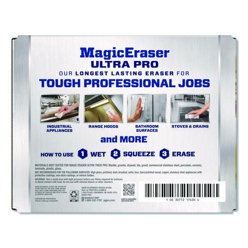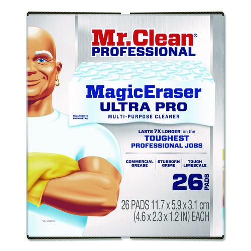 Mr. Clean® Professional Magic Eraser Ultra Pro is a powerful multi-purpose cleaner that lasts seven times longer than the Original Magic Eraser – our longest lasting eraser for tough professional jobs! Ultra Pro is 60% thicker than the Extra Durable Magic Eraser for a comfortable grip and more cleaning power. It reaches into surface grooves to lift away the toughest soils.