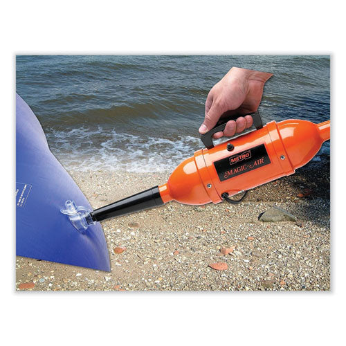 Take the work out of inflating and deflating rubber boats, kiddie pools, air mattresses, balls and toys. Fast, fun and easy to use, the MagicAir® Electric Inflator/Deflator produces a high volume of air to make quick work of most inflatables. Lightweight, compact and easy to store, it's ideal for schools, vacationers, recreational boaters, campers and more. Rugged all steel construction with a weather-resistant, baked enamel finish stands up to heavy use in just about any environment.Package Includes: (1) Notched Adapter; (1) Tapered Adapter; (1) 12 ft Two-Prong AC Power CordNote: This is a non-returnable item.