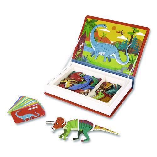 Cardboard magnetic educational game based on a theme; composed of many magnets and cards. Once the book is opened, the object of the game is to use the magnetic background for the placement of magnets to recreate the scene indicated on the card. Children can also have fun mixing the various interchangeable pieces to create their own stories. Educational learning aid, enhancing cognition and dexterity.Package Includes: (40) Magnetic Shapes; (10) Cards