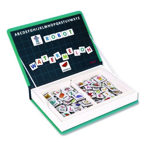 Cardboard magnetic educational game based on a theme; composed of many magnets and cards. Once the book is opened, the object of the game is to use the magnetic background for the placement of magnets to recreate the scene indicated on the card. Children can also have fun mixing the various interchangeable pieces to create their own stories. Educational learning aid, enhancing cognition and dexterity.Package Includes: (116) Magnetic Shapes; (26) Cards