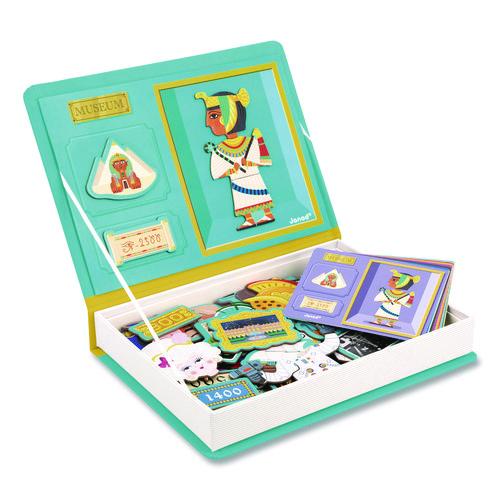 Cardboard magnetic educational game based on a theme; composed of many magnets and cards. Once the book is opened, the object of the game is to use the magnetic background for the placement of magnets to recreate the scene indicated on the card. Children can also have fun mixing the various interchangeable pieces to create their own stories. Educational learning aid, enhancing cognition and dexterity.Package Includes: (60) Magnetic Shapes; (12) Cards