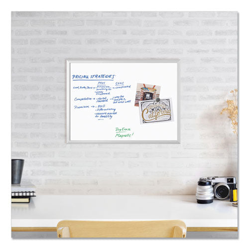 U Brands Magnetic Dry Erase Board with Aluminum Frame is perfect for frequent use areas at the office, in classrooms, at home and in almost any commercial space. Premium painted steel surface delivers excellent resistance against staining and ghosting, ensuring easy-erase performance with minimal cleaning care; and as it's steel, you can also use magnets to post notes, messages, pictures, menus and more. Sturdy aluminum frame and thick insulation underneath its surface keep the board rigid, while its universal mounting system allows you to install it vertically or horizontally. Though compatible with all dry erase markers, try U Brands dry erase markers for the ultimate writing and erasability experience.Package Includes: Mounting Hardware