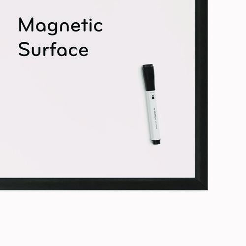 Upgrade your workspace, classroom or home with U Brands' vibrant and versatile Wood Frame Magnetic Dry Erase Board. Featuring a sleek, modern profile and a premium stain- and ghost-proof surface, this board provides a blank canvas for notes, ideas and creative designs, while ensuring a clean slate every time you erase. And as the surface is steel, all it takes is a magnet to post memos, photos, menus and more. Included hardware and instructions make mounting a breeze, allowing you to start brainstorming, organizing and sharing in no time. Whether you need a tool for staying organized or a place for doodling, this essential won't disappoint.Package Includes: Mounting Hardware