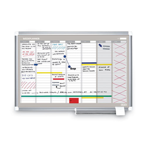 Magnetic Dry Erase Calendar Board, Weekly Planning/Scheduling, 36" x 24", White Surface, Satin Aluminum Frame