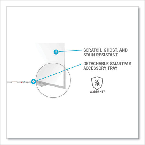Offering a superior writing surface and unsurpassed durability, Ghent's Porcelain Magnetic Whiteboards were made with customers in mind. The 28-gauge porcelain-on-steel surface is mounted to a 0.38" backing for added strength. The durable porcelain enameled surface keeps the dry erase board from scratching or denting, even when installed in high-traffic schools and offices. The wear-resistant surface does not absorb ink, eliminating staining and ghosting that would otherwise result from repeated use. The easy-to-wipe surface requires less cleaning, achieving a long-lasting bright white surface without the hassle. Ghent's whiteboard holds magnets and can be used to post bulletins without worrying the announcement will be erased. Each board features a sleek satin aluminum frame with an accessory tray and protective end caps. Boards are shipped to you in Ghent's worry-free packaging, designed specifically for shipping whiteboards.Note: This is a non-returnable item.