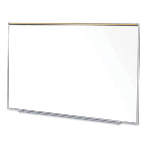 Magnetic Porcelain Whiteboard with Aluminum Frame and Maprail, 96.53" x 60.47", White Surface, Satin Aluminum Frame