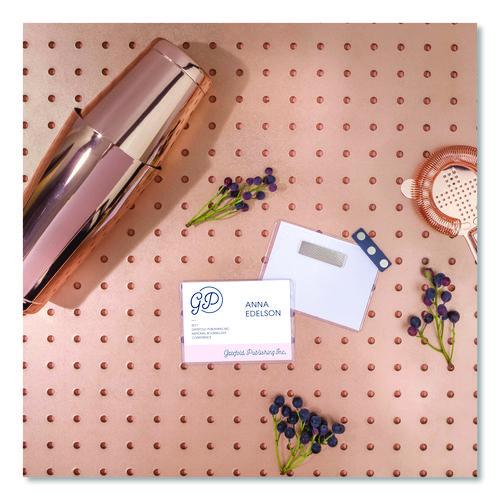 Strong, heavy-duty magnet holds name badge in place. Safe for any style of clothing without damaging material or flipping over. Features an easy-to-load pocket style design. Durable plastic is reusable and displays names clearly. Micro-perforated inserts separate cleanly, leaving smooth edges. Easy to customize with free designs and templates using Avery® Design & Print. 8.5 x 11 sheets for laser and inkjet printers.Package Includes: (48) Printable Name Badge Inserts