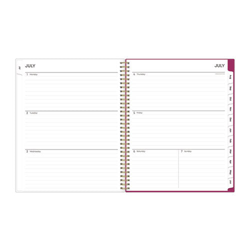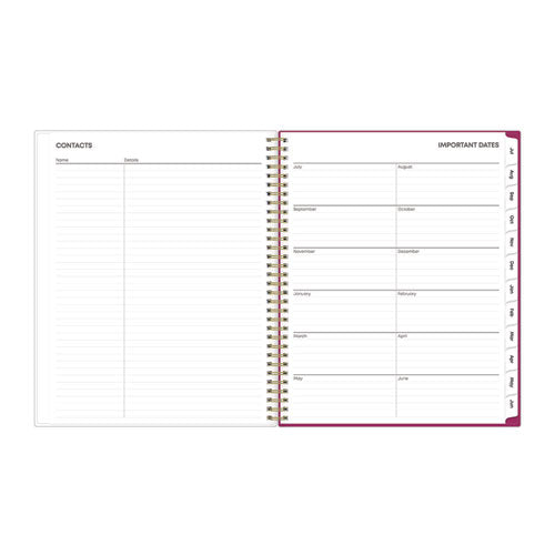 Add a tropical twist to your planning collection. The Mahalo CYO (Create Your Own Cover) planner is ideal for organizing and planning your academic year. The clear cover can be used to display your favorite artwork or pictures. Weekly two-page spread schedules your week Monday - Sunday. Monthly view per two-page spread features a Notes column. The durable monthly tabs allow for easy access to each month. Includes a dual-sided pocket page for your notes and papers. Gold twin-wire binding finishes the look and offers easy page turning. Thick premium pages reduce ink bleed-through. Includes yearly reference calendars, quick reference page, contacts pages, and notes pages. Dated July - June with two bonus monthly views (May - June).Note: This is a non-returnable item.