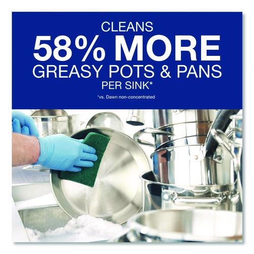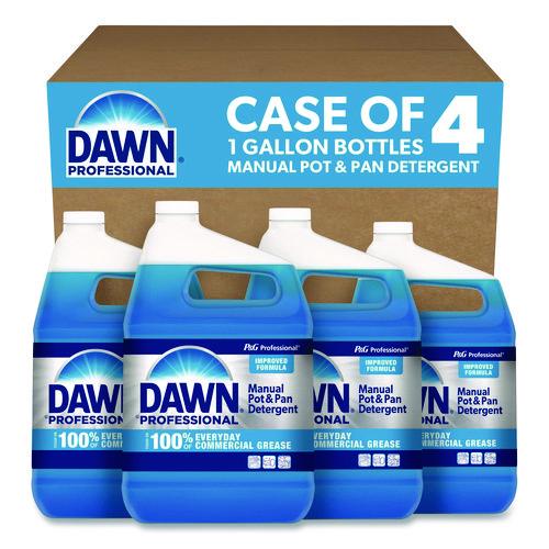 Dawn Professional Manual Pot and Pan Detergent is a highly concentrated liquid dishwashing soap that has the grease-fighting power of Dawn and is specifically formulated for tough jobs at your business. This liquid dish soap is specially formulated to help remove greasy food soils from pots, pans and utensils. Dawn dish detergent can work as an all-purpose cleaner for a variety of task areas, including three-compartment sinks (wash sink), countertops, dining areas, cooler doors, windows (outside and inside), portable equipment, trash receptacles, coffeemakers, drive-thru menu boards, and tile walls.