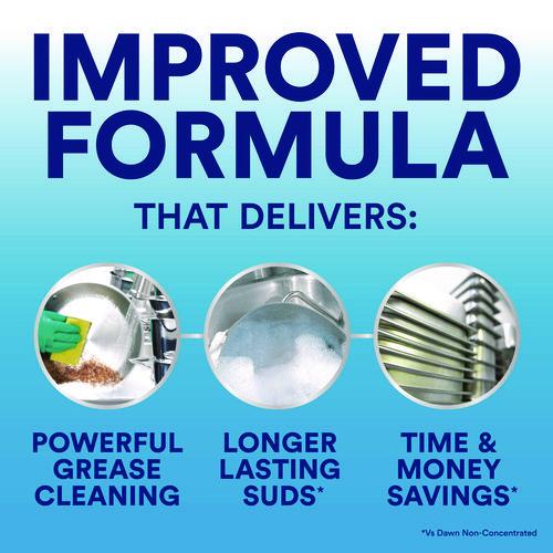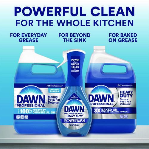 Dawn Professional Manual Pot and Pan Detergent is a highly concentrated liquid dishwashing soap that has the grease-fighting power of Dawn and is specifically formulated for tough jobs at your business. This liquid dish soap is specially formulated to help remove greasy food soils from pots, pans and utensils. Dawn dish detergent can work as an all-purpose cleaner for a variety of task areas, including three-compartment sinks (wash sink), countertops, dining areas, cooler doors, windows (outside and inside), portable equipment, trash receptacles, coffeemakers, drive-thru menu boards, and tile walls.