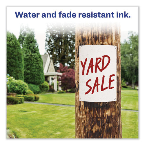 Durable jumbo chisel tip (5/8") marks in a variety of line widths, from thin to extra wide - great for making signs, posters and banners. Extra-large barrel with generous, long-lasting ink supply. Won't dry out - leave cap off up to 1/2 hour! The ink is low-odor, nontoxic and safe for office, school, or home.