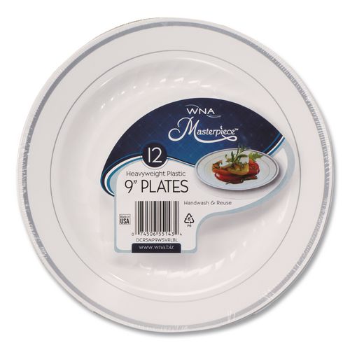 Masterpiece™ dinnerware is made from heavyweight, durable plastic. Provides an excellent alternative to hand-painted china, removing the problems involved in breakage and transport. The elegant metallic accents and fluting add grace and style to any occasion. This dinnerware presents all the beauty of hand-painted china with the convenience of a disposable.
