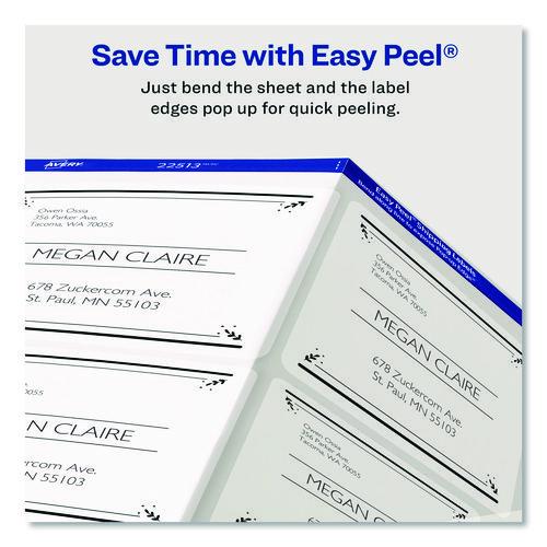 All your mailing is easier with these Clear Easy Peel® Mailing Labels. Labels virtually disappear on white and light colored surfaces. These labels feature exclusive Avery® Sure Feed® technology to improve print alignment and avoid jamming. The blue, textured strip on the top of each sheet provides better grip for printer rollers and helps feed the sheet through your printer. Ultrahold® permanent adhesive makes sure that these labels stick and stay without peeling, curling or falling off. The Pop-up Edge offers fast peeling--just bend the label sheet to expose the label edge, peel, then fold the sheet back to flat in a jiffy. They're also great as gift tags or as ID and organization labels. Easily import names, addresses and logos and print on your labels with free templates and designs from Avery® Design & Print. Get pages of professional-looking labels filled with eye-catching text and graphics.