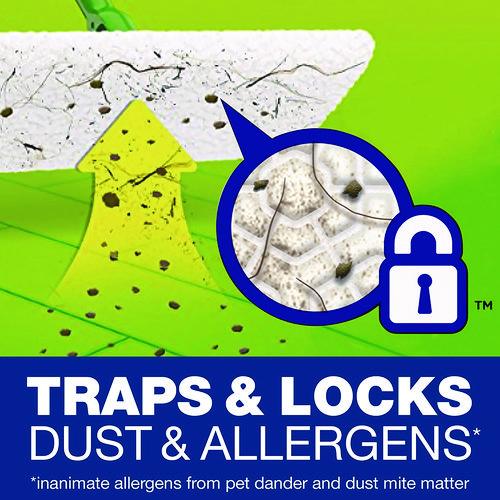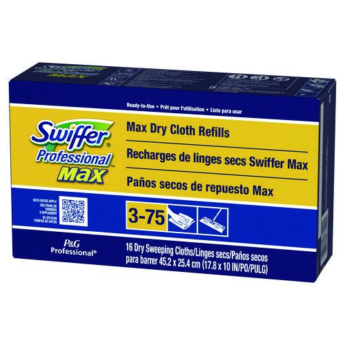 Swiffer Professional Max Dust Mop Sweeping Pads trap dust, dirt and hair on electronics and other hard surfaces with their patented 3-D fiber web. Instead of just moving dust and dirt around, eliminate it with these large, soft dry cloths. Dust is removed, not sent airborne so you will save time because dusting won't be needed so often. Combine these dusting pads with the Swiffer Max Sweeper (sold separately) to cover large areas quickly. Wiping a hard surface with these cloths creates an electrostatic charge that attracts dust, dirt, common allergens and hair to the cloth. Cloths can be used on virtually any surface with no need for spray polishes. Cloths are safe for wood, ceramic, vinyl, tile, electronics, and other hard surfaces, and leave no residue. Fits 17" wide Swiffer Sweeper.