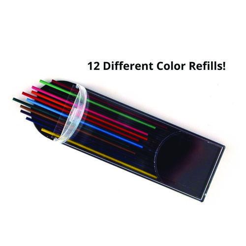 Simply and easily change colors! This 12-in-1 mechanical pencil set is convenient, economical and fun. Mechanical pencil comes with 12, 2 mm-colored leads to make a complete, easy to carry colored pencil set. No pencil sharpening required! The Classics supplies are useful, high-quality items that are great for school, home and offices. They integrate new unique ideas with traditional must-haves.Package Includes: (1) Pencil; (12) Colored Lead RefillsNote: This is a non-returnable item.