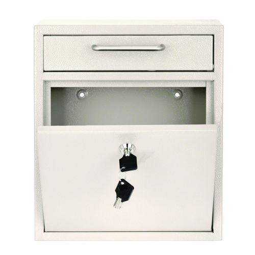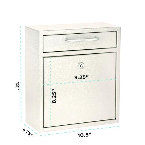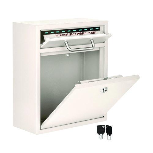 AdirOffice Locking Drop Box Wall Mounted Mailbox is designed to hold keys, cash, envelopes or other important materials that need to be dropped off after hours. Constructed of durable, heavy duty 16-gauge galvanized steel to provide long-lasting strength and furnished using a powder-coated, scratch-resistant finish, this mailbox is made to meet your needs year after year. Ideal for retail stores, military bases, rental facilities, customer service counters, manufacturing plants, auto dealers and other facilities, this secure drop box features an anti-fishing bin door that accepts letters, checks, keys and other small bundles. To prevent theft, an anti-pry latch locking mechanism is used. The locking access door features a commercial grade lock and includes three laser cut keys to ensure the items inside are safe and secure. To finish it off, this mailbox includes four mounting screws, four stainless steel washers, a driver bit and a drill bit for quick and easy installation of the box wherever you'd like to mount it.Package Includes: Drill Bit; Driver Bit; (4) Mounting Screws; (4) Stainless Steel WashersNote: This is a non-returnable item.