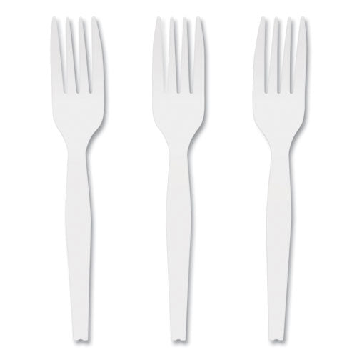 Mediumweight Plastic Cutlery, Fork, White, 1,000/Pack