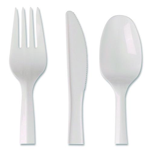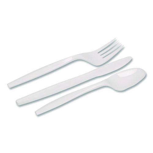 Mediumweight Polypropylene Cutlery, Fork/Knife/Teaspoon, Plastic, White, 250/Carton